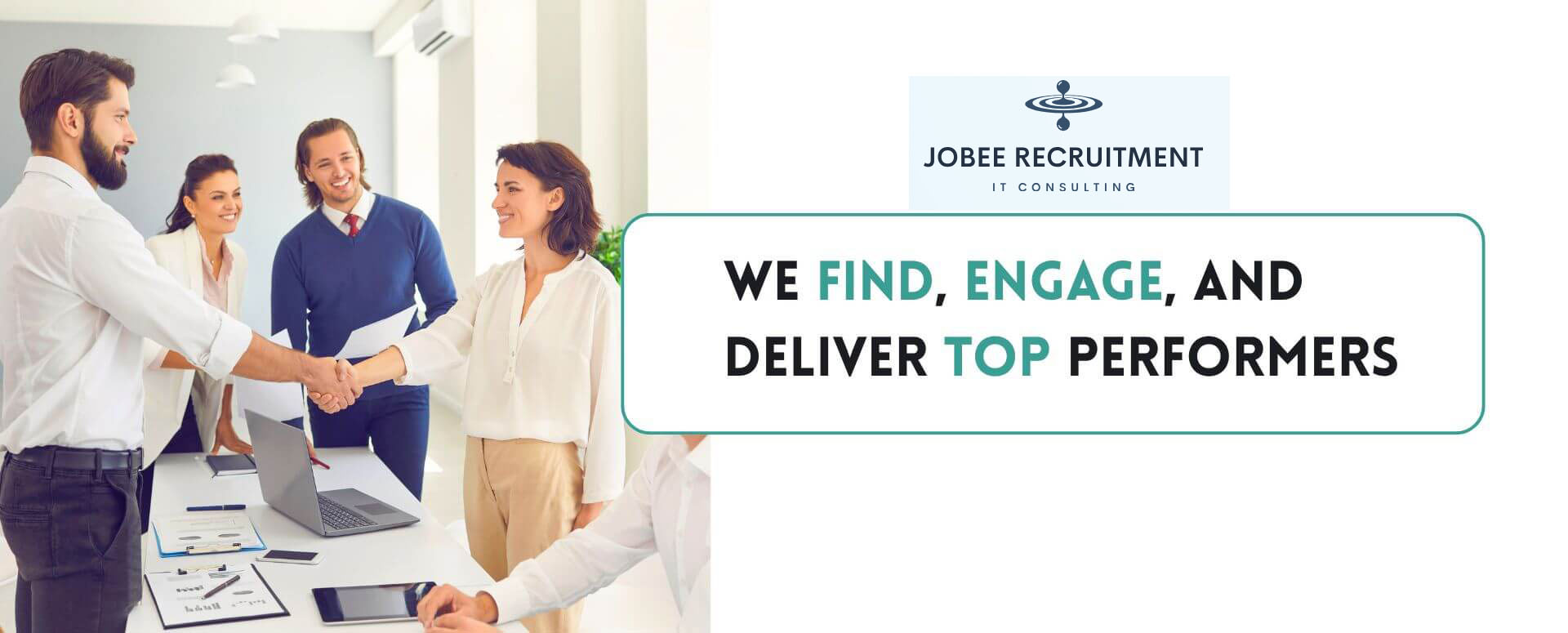 A dedicated team of JOBEE Recruitment Inc. consultants collaborates with your in-house project teams or works alongside them on-site to successfully deliver technology projects. This approach ensures seamless teamwork and adaptability to evolving project demands.